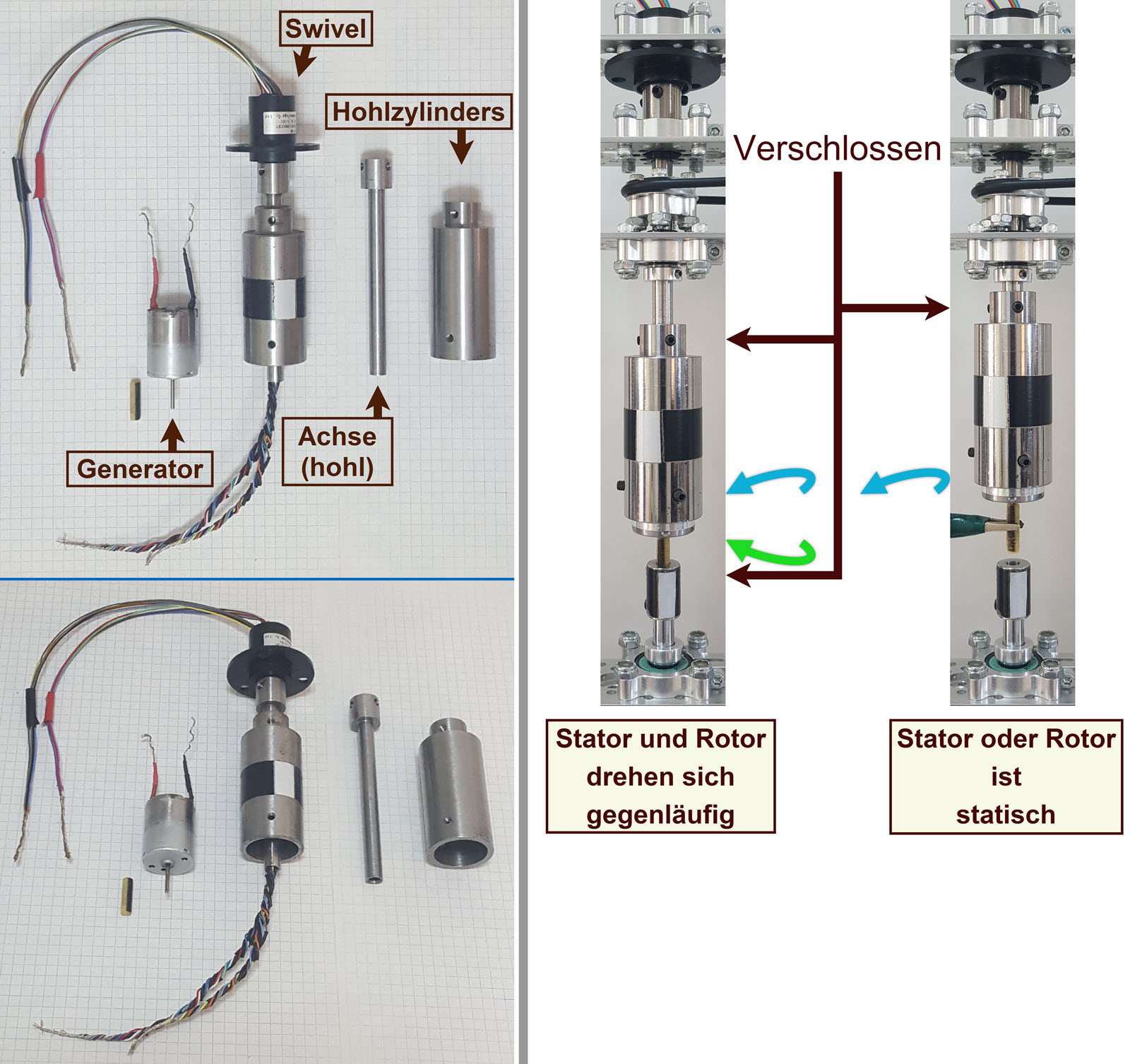Die Ausgangsleistung in Spannungen (V) und Milliampere (mA) vom Generator (DC) ist in jedem Video auf der linken Seite des Geräts zu sehen.